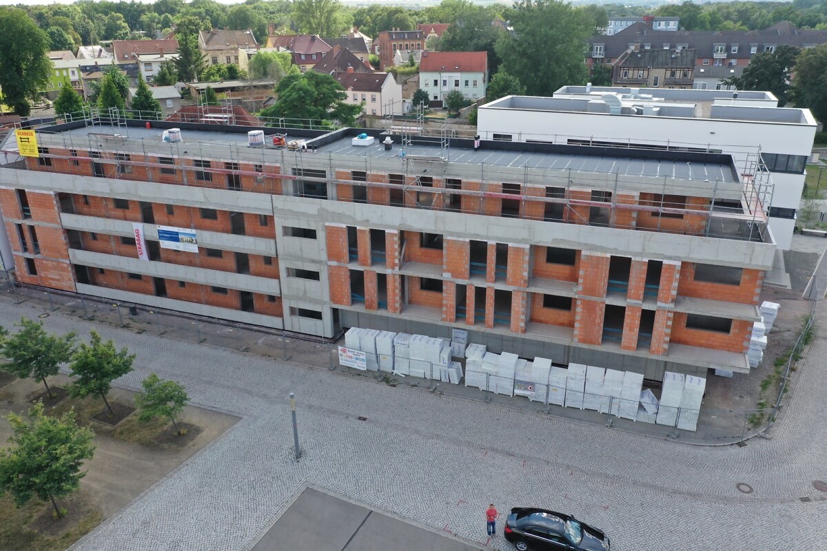 Das Bauteil I umfasst dabei die von der Wohnungs- und Baugesellschaft Staßfurt zu errichtenden 19 barrierefreie Wohnungen.In dem 4-geschossigen Gebäude sind elf Zwei- und acht Dreiraumwohnungen entstanden.