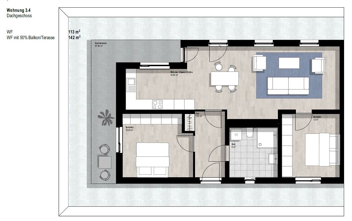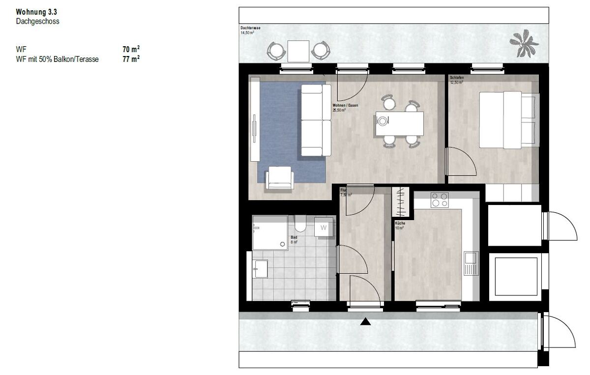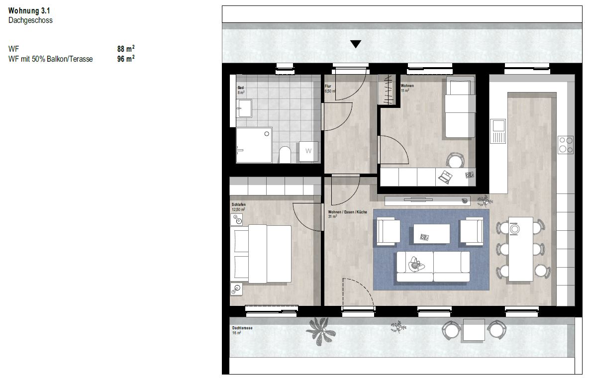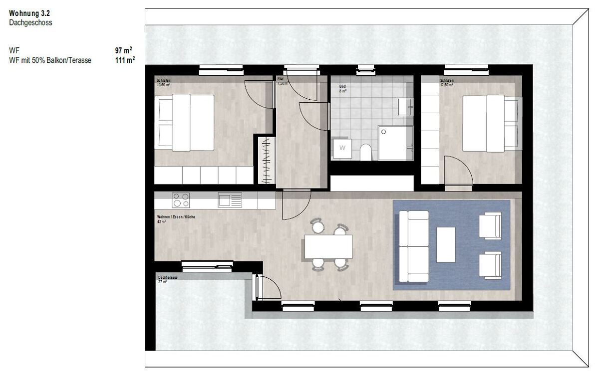 Die Wohnflächen variieren zwischen 60 m² bis 100 m².