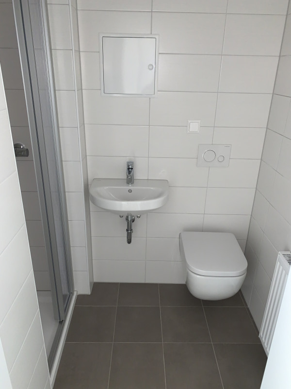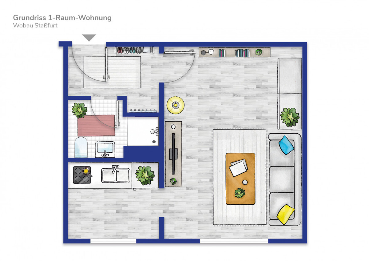 Die Kleine Wohnung ist perfekt für einen Start in die eigenen vier Wände. Die Küche mit einer kleinen Nass- und Kochstrecke hat ein Fenster. Das innen liegende Bad ist mit einer Dusche ausgestattet.